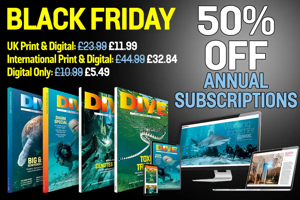 PLUS access the DIVE archive with more than 100 DIVE magazines where you can research places to dive and what kit to buy – AMAZING value at just £5.49.