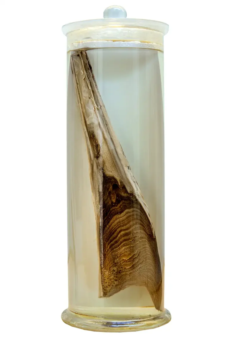 Scientists have been collecting these plugs since the early 20th century, but back in the 1950s, Richard’s predecessor at the NHM made a half-section through one and realised that it was full of layers that are laid down year by year and can therefore be used to tell the age of the animal.
