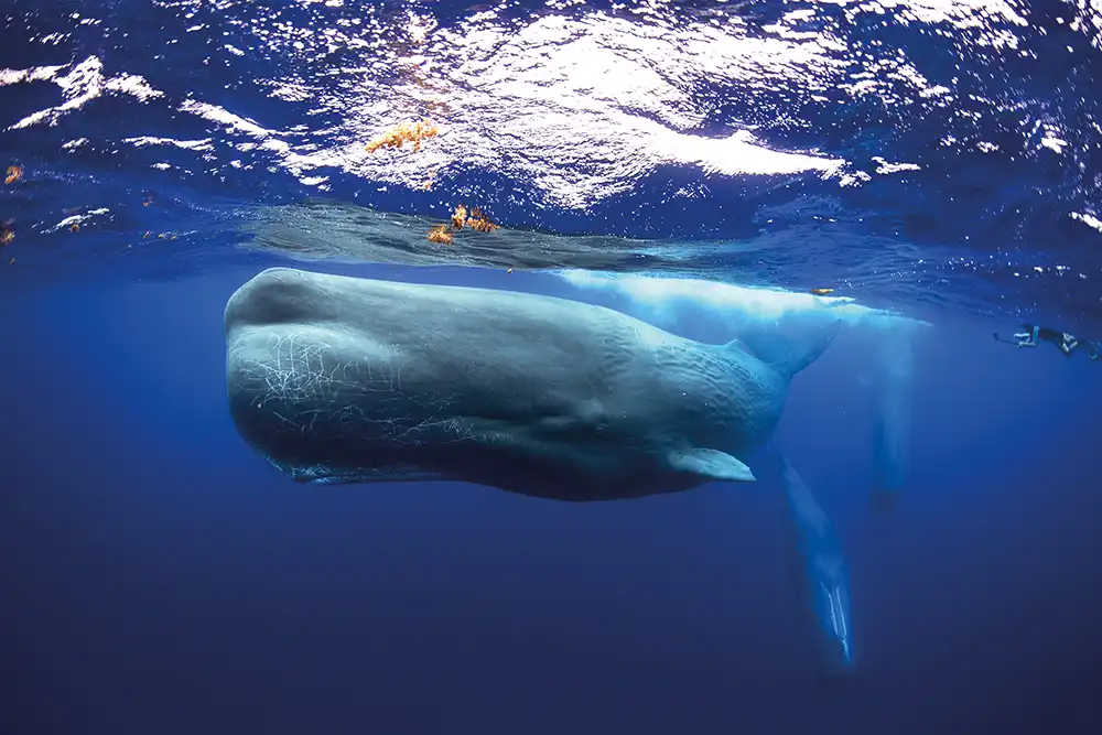 If you’re talking about a pod of sperm whales, however, it’s a very different story. ‘If one of them is echolocating, when the sound waves bounce back, all of them receive the image,’ says Richard.
