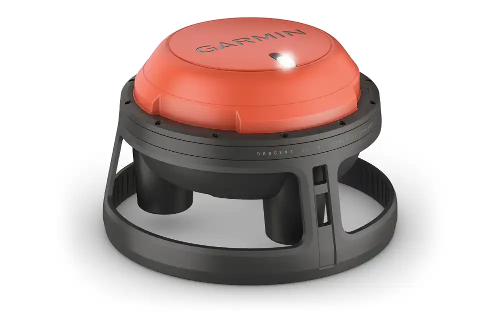 When paired with a Descent T2 transceiver, up to eight computers can be networked together using Garmin’s proprietary SubWave sonar communications technology.