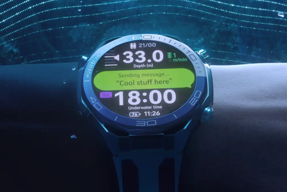The new Watch Ultimate 2 uses Huawei’s own sonar messaging system, which is capable of sending messages and emojis across a distance of up to 30 metres.